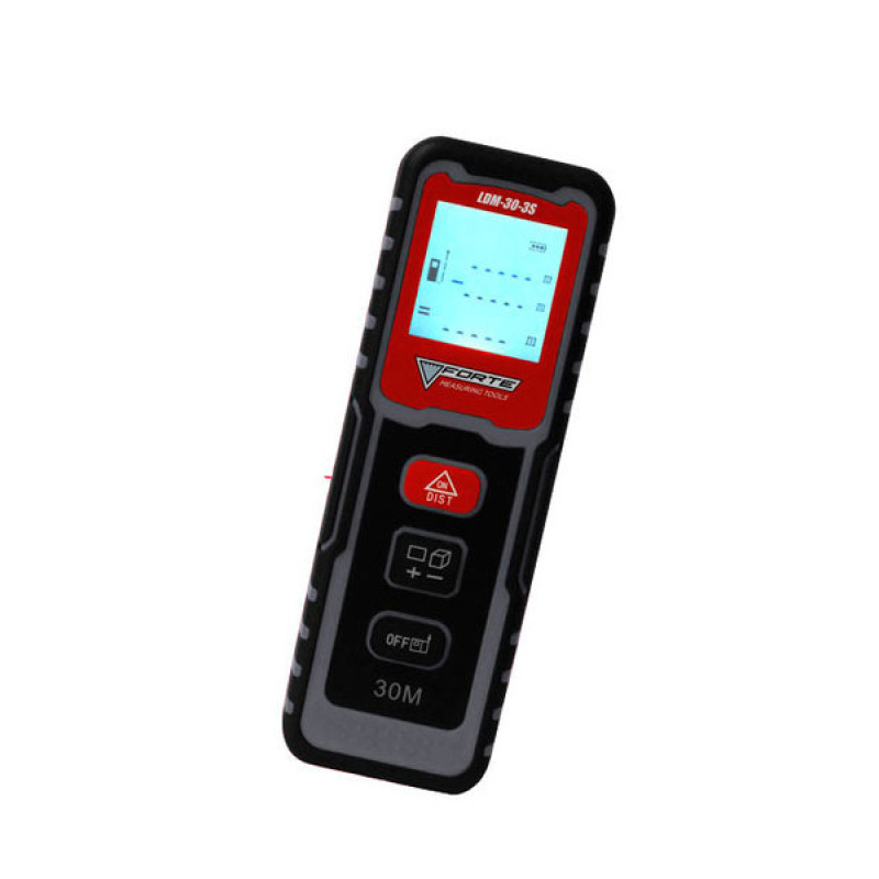 Дальномер лазерный Forte LDM-30-3S Forte LDM-30-3S – популярная модель лазерного дальномера с лазерным диодом 635 нм. Аппарат работает на двух батареях класса ААА по 1,5В. Способен точно измерять расстояние до 30 м.