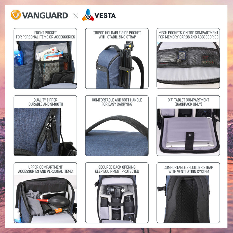 Когда Вы готовы перейти от снимков в смартфоне к настоящей фотографии, рюкзаки Vanguard Vesta Aspire - это именно то, что Вам необходимо, конечно же, наряду с самой фотокамерой. Vesta Aspire 41 воплощает концепцию "минимум для максимума". При небольших внешних размерах и скромном внутреннем объеме этот рюкзак способен вместить полный набор начинающего фотографа, включая полноразмерный штатив, и личные вещи. Разработанный для самых популярных комплектов камер, Vesta Aspire обеспечивает отличную защиту от ударов и влаги, а также функциональность наряду с интуитивно понятной компоновкой карманов и отделений.