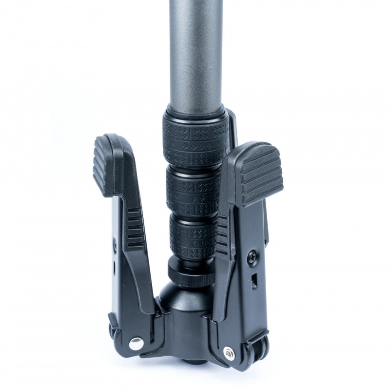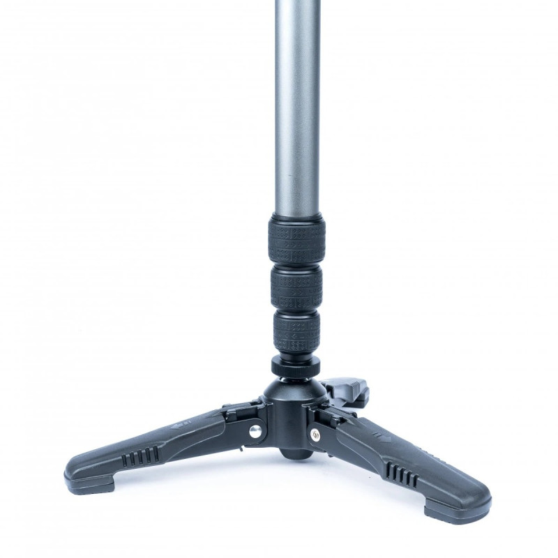 Tri-Feet. Занимая не многим больше места для установки, чем традиционный монопод, система опоры Tri-Feet делает монопод устойчивым и универсальным, позволяя более качественно проводить не только фото, но и видеосъемку. Три ножки находятся сложенным в транспортном положении, но моментально раскладываются при необходимости съемки. Благодаря использованию шарового шарнира в основании, монопод можно плавно наклонять в любую сторону, а также вращать вокруг своей оси на 360°, делая возможной панорамную съемку даже без использования штативной головки. Если необходимо получить максимальную устойчивость, - гаечный фиксатор блокирует движение шарового шарнира.