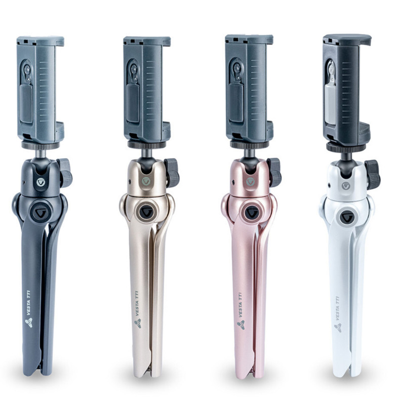 Vanguard Vesta TT1 - ультракомпактные алюминиевые штативы с широкими возможностями. Выбрав одно из четырех доступных цветовых исполнений, Вы получаете комплект из штатива, адаптера для смартфона, и пульта ДУ с интерфейсом Bluetouth для IOS/Android.