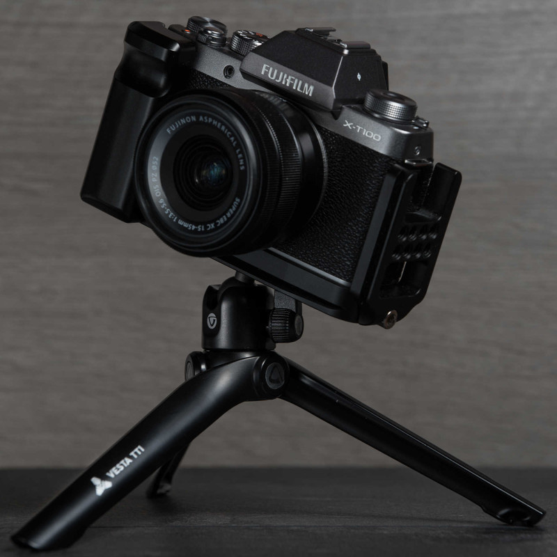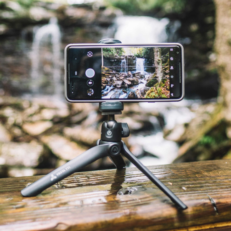 Vanguard Vesta TT1 имеет уникальную систему раскрытия ножек, которая экономит время, порой так необходимое для того, чтоб успеть поймать качественный снимок. Потянув за одну ножку, другие две открываются автоматически. Штатив способен выдержать до 2 кг нагрузки, а потому подойдет не только для смартфонов и беззеркальных камер, но и для труб и небольших DSLR камер с KIT-объективом.