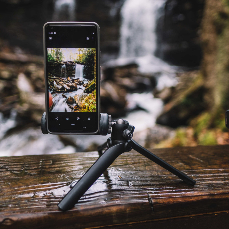 Адаптер для смартфона можно использовать как со штативом, так и отдельно в качестве самостоятельной подставки для смартфона. Сам же штатив можно использовать в качестве небольшой селфи-палки и стабилизатора изображения, держа его в руке со сложенными ножками.