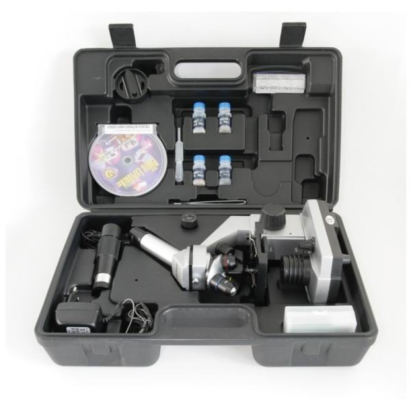 Перечень аксессуаров включает готовые слайды, к осмотру которых можно приступить немедленно. Также в наборе есть аксессуары для препарирования образцов, а также инкубаторий и готовые препараты Не смотря на то, что данный прибор скорее будет интересен для детей и подростков, все оптические элементы выполнены из стекла, серьёзное увеличение позволит рассмотреть практически всё, что доступно взрослому биологическому микроскопу.