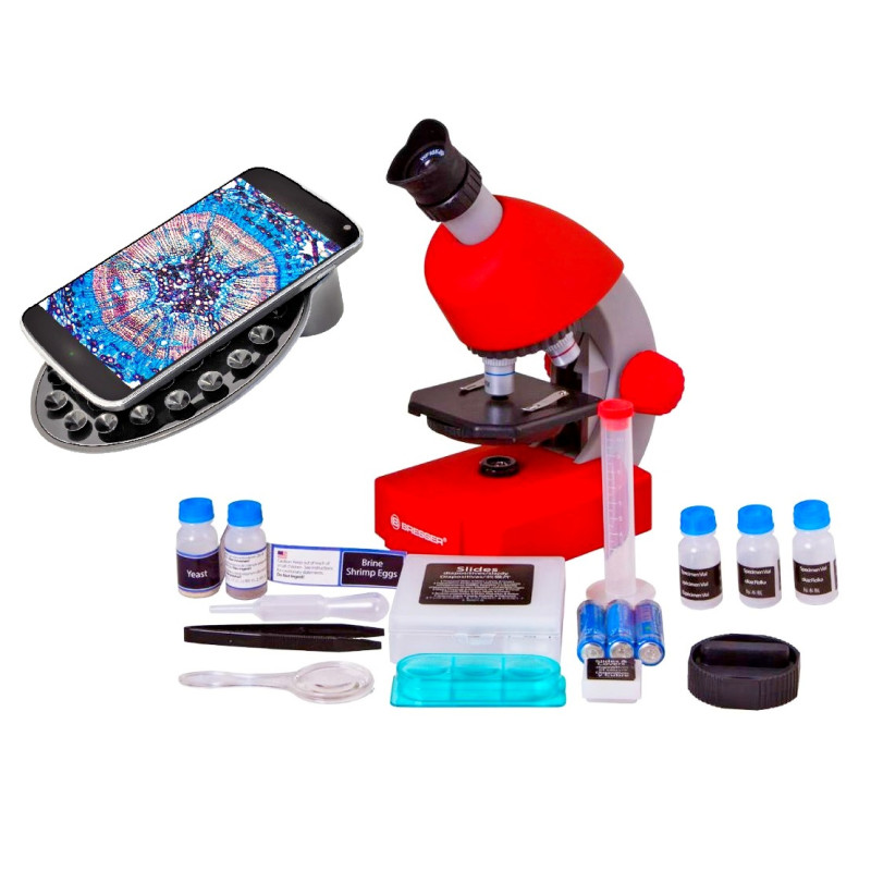 Микроскоп Bresser Junior 40x-640x Red с набором для опытов и адаптером для смартфона (8851300E8G000)