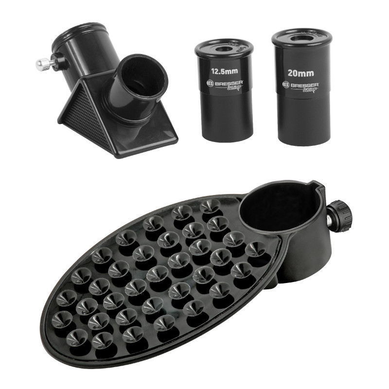 Этот обучающий набор состоит из двух самых популярных моделей микроскопа и телескопа Bresser. Набор приоткроет ребенку дверь в увлекательнейший мир астрономии и микроскопии. На первый взгляд небольшой диапазон увеличений телескопа и микроскопа позволят ребенку самостоятельно управляться с этими оптическими приборами и наблюдать наиболее увлекательные объекты от насекомых до Луны совершенно самостоятельно. Отличительной особенностью данного набора является наличие адаптера для камеры смартфона. С помощью данного адаптера, идущего в комплекте, легко фотографировать объекты наблюдений под микроскопом и в телескопе на камеру смартфона.