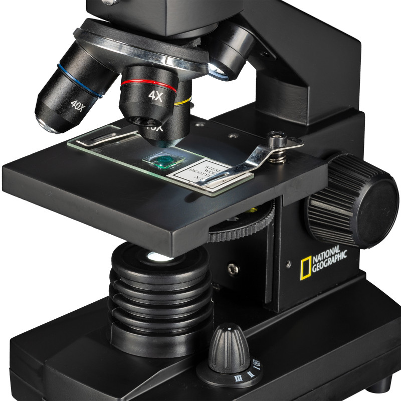 Микроскоп National Geographic 40x-1024x USB хорошо укомплектованная модель недорогого обучающего микроскопа, снабженная пластиковым кейсом, широким набором аксессуаров, а также PC-микроокуляром (цифровой камерой), который обеспечит комфортное наблюдение образцов непосредственно с экрана монитора. Вместе с тем прибор укомплектован качественной стеклянной мультипросветленной оптикой, что делает его интересным не только детям и подросткам, но и взрослым.