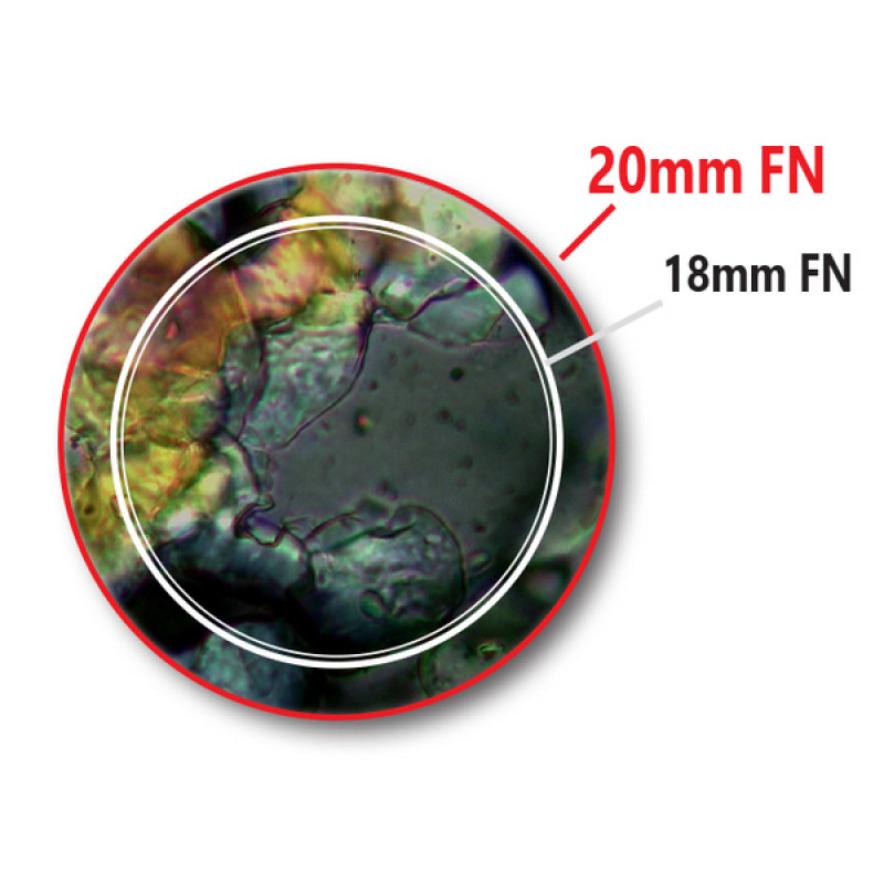 - Окуляры: широкоугольные (линейное поле зрения 20 мм) с увеличенным выносом зрачка и просветляющим покрытием