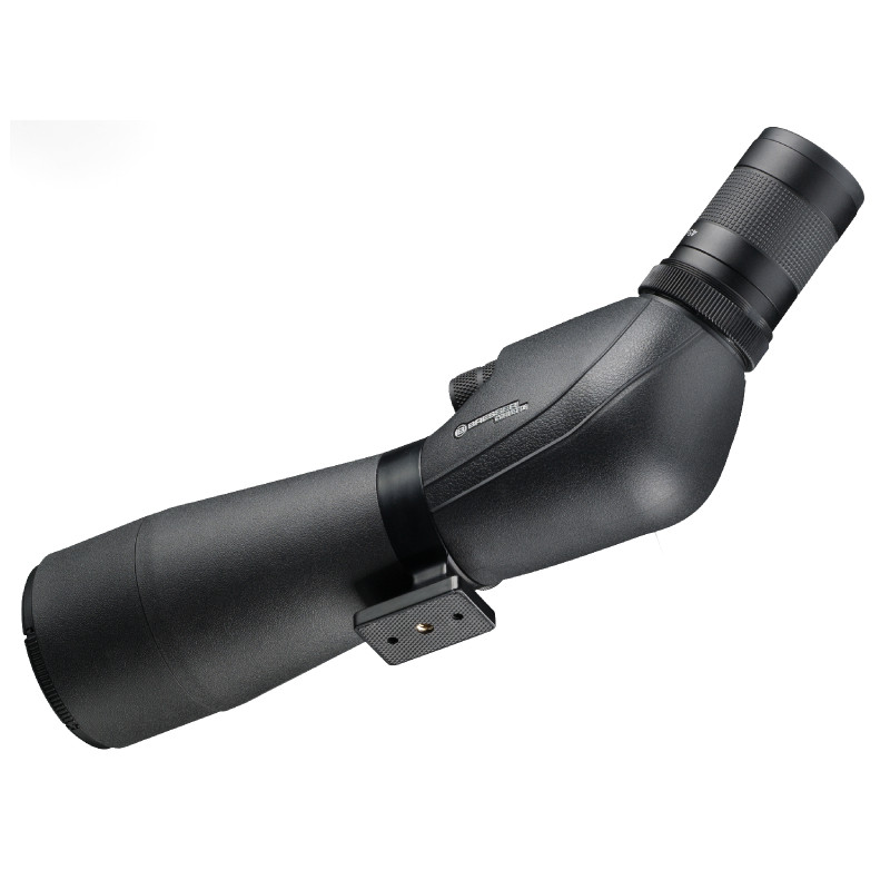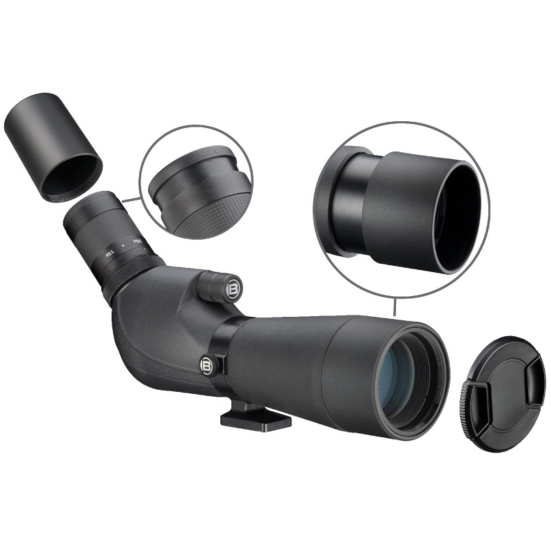 Потовщене гумове покриття чорного кольору надійно захищає прилад від пошкоджень і забезпечує надійне захоплення підзорної труби рукою. Для максимального комфорту спостереження окуляр встановлений під кутом 45º. У комплект поставки входить настільний штатив-тринога для польових спостережень. Труба повертається в хомуті на 340º для досягнення найбільш зручного кута спостережень. Для зручності транспортування і зберігання можна використовувати зносостійкий нейлоновий чохол на замку.