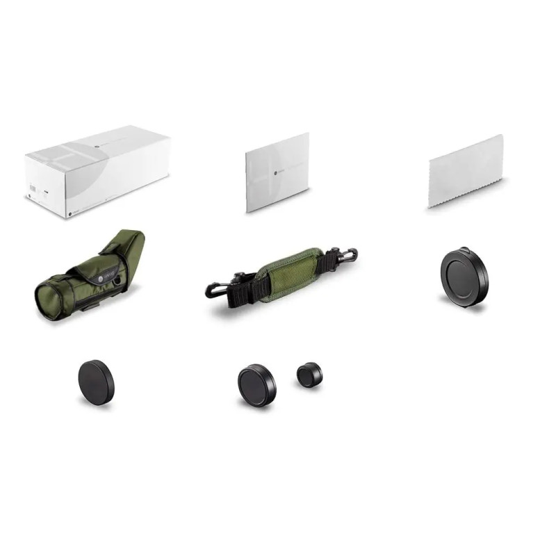 Комплектація Підзорна труба Нейлоновий захисний польовий чохол з ременем на плече Знімний окуляр Захисні кришки окуляра та об'єктива в розібраному та зібраному положенні. Серветка для протирання оптики