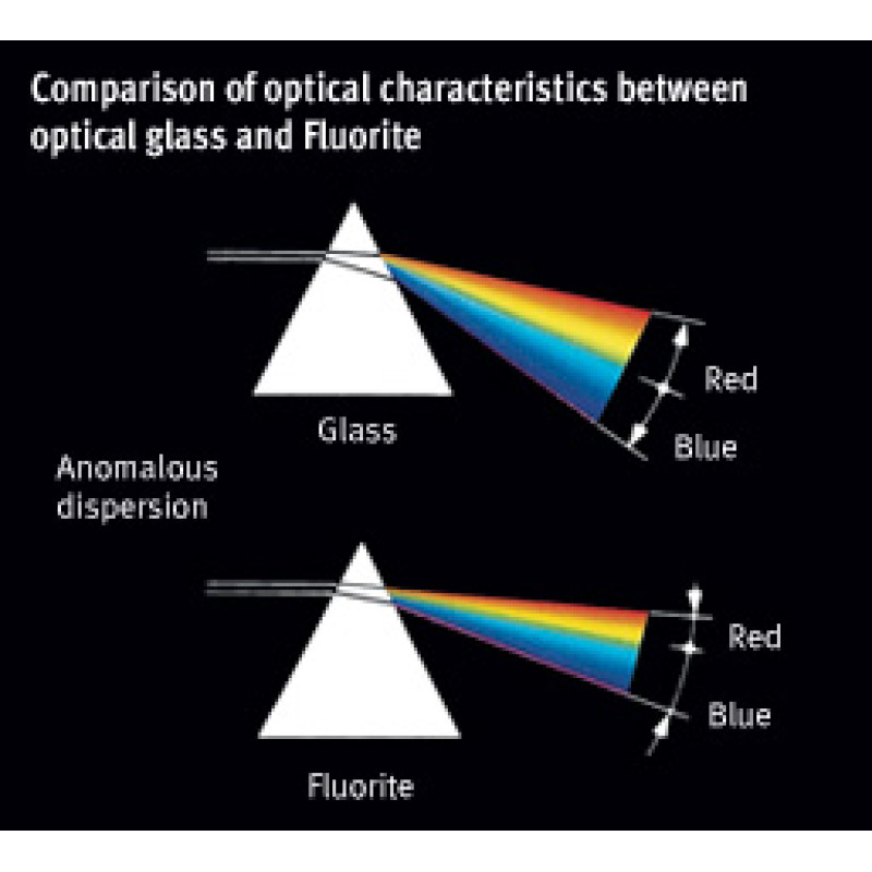 Prominar Fluorite Crystal - флюорит на сегодняшний день вне всякого сомнения является лучшим материалом для изготовления оптических линз. Флюорит - это кристаллический материал, который имеет сверхнизкий коэффициент преломления света, недостижимый для любого другого низкодисперсного стекла. Коэффициент преломления кристаллов флюорита мало зависит от частоты света (от спектра). Все световые волны преломляются на одинаковую величину угла. Применение данных кристаллов в конструкции объективов позволяет свести до минимума такую оптическую аберрации, как хроматизм. Стоимость флюорита на порядок выше стоимости оптических стёкол, из-за чего только немногие производители высокотехнологичной оптики применяют его в своих продуктах премиум-класса. Kowa небезосновательно утверждает о превосходстве Prominar Fluorite Crystal над любыми разновидностями низкодисперсных стёкол, что неоднократно подтверждено тестами и мнением экспертов.