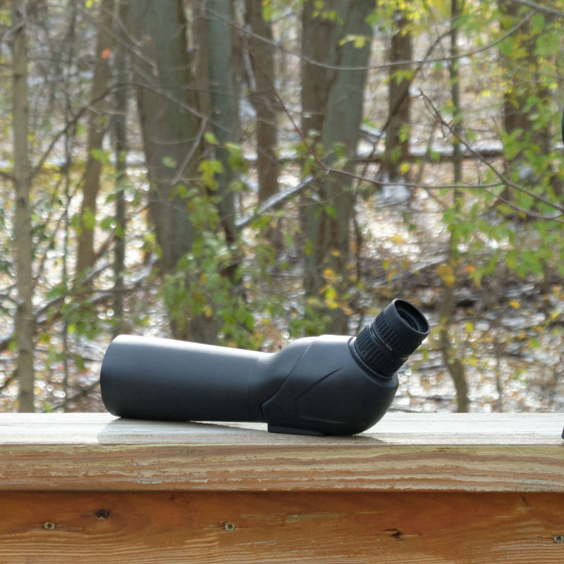 Tripod mountable. В редких случаях подзорные трубы используются для наблюдения без штатива. Как правило это трубы с прямым окулярным узлом. Большие увеличения, длительные наблюдения, съемка на камеру или смартфон с помощью трубы, а в особенности окулярный узел под углом 45º, требуют стабильного положения трубы. Данная модель имеет хомут с креплением на штатив со стандартной резьбой 1/4 - 20 UNC. Возможно использование штативов без быстросъемной планки.