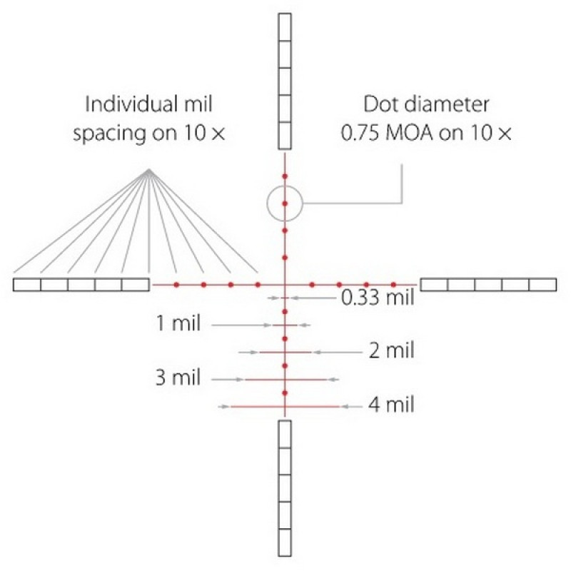 Значительным преимуществом является то, что сетка выгравирована на стеклянной пластине. Это обеспечивает практически 100% защиту сетки от разрушительного влияния разновекторной отдачи пружинно-поршневой пневматики. Кроме того все элементы сетки достаточно тонкие и не перекрывают цель.