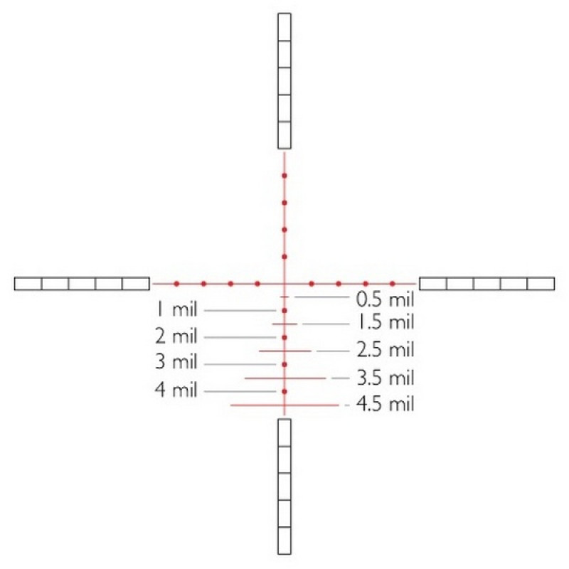 - Подсветка прицельной сетки: красная с плавной бесступенчатой регулировкой яркости