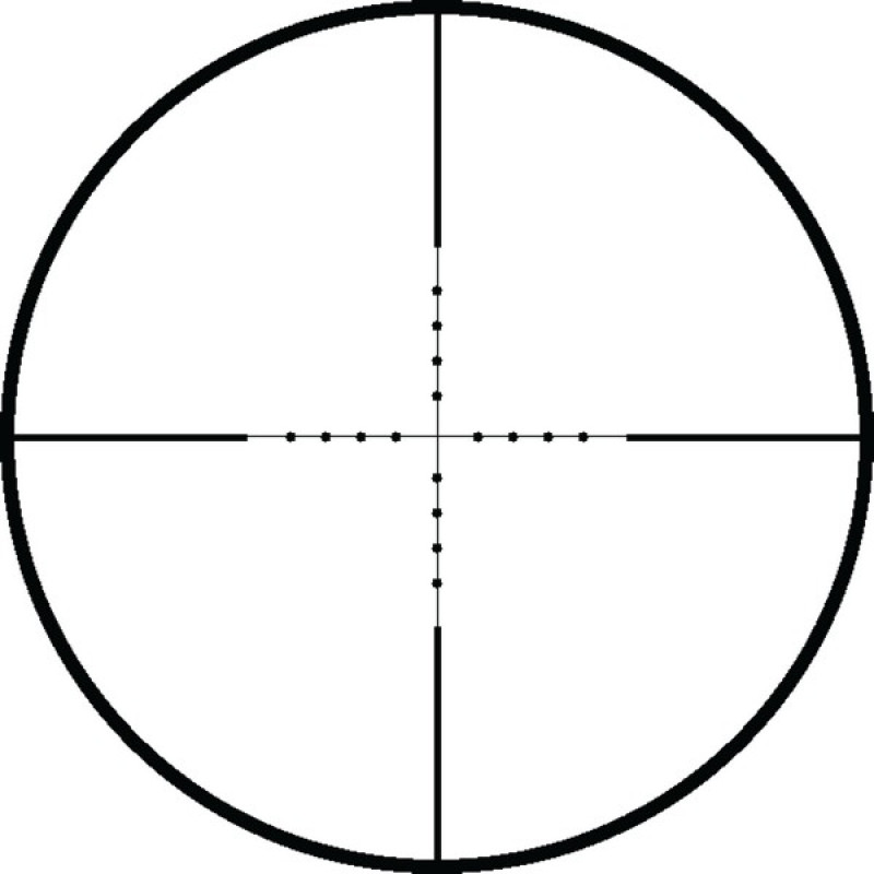 Mil Dot - одна из самых универсальных прицельных сеток, все компоненты этой сетки имеют строго регламентированные размеры, расстояния между всеми элементами также регламентированы. Благодаря этому не проблема определить расстояние до цели, приняв при этом правильную поправку на ветер и определить траекторию полета и падения пули. Данный Mil Dot верен при 10-кратном увеличении. Для других увеличений линейные и угловые размеры определяются методом интерполяции, либо по специальным таблицам. Персональную адаптацию сетки под конкретное оружие и тип снаряда позволит совершить бесплатный баллистический калькулятор.