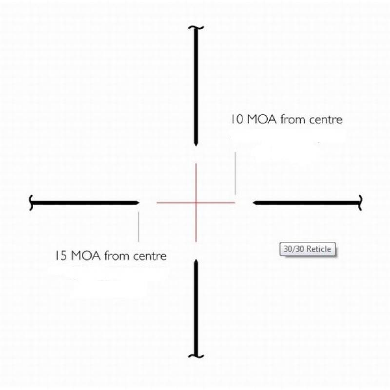 • Прицельная сетка:  30/30 Centre Cross IR (гравированная)