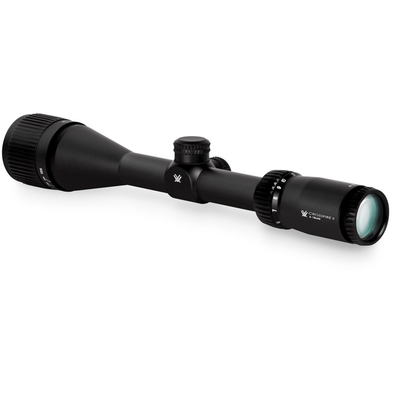 Располагая увеличенным фокусным расстоянием выходного зрачка, механизмом быстрой фокусировки Fast Focus, механизмом отстройки параллакса на объективе, полным многослойным просветлением оптики и обнуляемыми барабанами ввода поправок, данный прицел сконструирован без компромиссов и по своим характеристикам оставляет далеко позади большинство аналогичных моделей в своей ценовой категории. Прочный монолитный корпус из авиационного алюминия с анодированным покрытием защищен от царапин, влаги, пыли и запотевания. Центральная точка сетки имеет подсветку с 11-ю уровнями яркости для стрельбы в условиях пониженной видимости. Дополнительно комплектация расширена солнцезащитной блендой. Прицел Vortex Crossfire II 6-18x44 AO (V-Brite IR) рекомендован для охотников - стрелков на средние дистанции из нарезного оружия патронами центрального боя и кольцевого воспламенения калибром до .308 WIN включительно.
