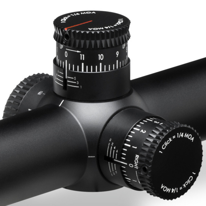 - Цена деления регулировки механизма поправок, угл. мин. 1/4"(0.25 MOA)@100 yds
