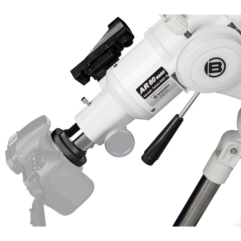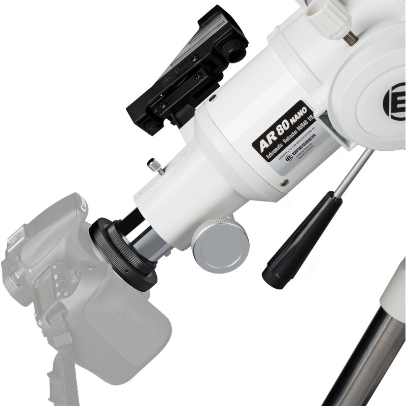 Телескоп Bresser Messier AR-80/640 Nano AZ представляет собой короткофокусный среднеапертурный рефрактор с качественной оптикой и новой азимутальной монтировкой Nano AZ, удобной для работы с легкими трубами средней апертуры. Телескоп будет весьма интересен для начинающих пользователей, так как имеет идеальный баланс между светосилой и возможностью получить достаточное увеличение при работе с качественным базовым окуляром. Модель отлично подходит для наблюдения объектов Солнечной системы, а также для наземных наблюдений. Телескоп поставляется практически собранным, и с необходимым набором аксессуаров для немедленного старта наблюдений. Телескоп очень устойчив, так как поставляется в комплекте со стальной монтировкой. Интересным аксессуаром в комплектации является адаптер для смартфона, с помощью которого легко фотографировать объекты наблюдений на камеру вашего смартфона.