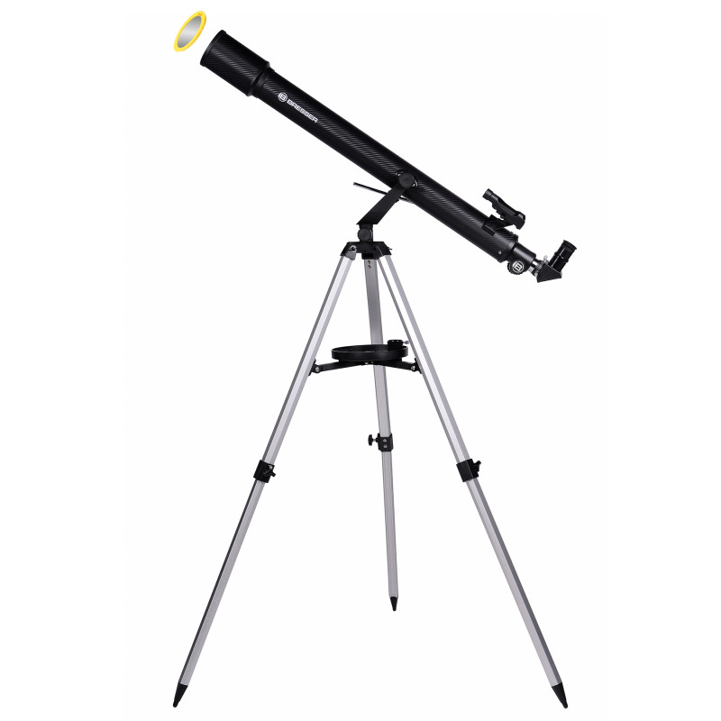 Данная модель получила обновление в виде солнечного фильтра и теперь может быть использована для дневных наблюдений солнечной активности. Телескоп Bresser Sirius Solar 70/900 (carbon) характеризуется отличным соотношением цены и характеристик. Фокусное расстояние 900 мм в сочетании с 70-мм линзой дают хорошие оптические показатели. Азимутальная монтировка проста в эксплуатации и максимально удобна для наблюдения за объектами нашей Солнечной системы. Отличительной особенностью от предыдущей версии является усиленная тренога, карбоновая отделка трубы и адаптер для камеры смартфона. С помощью адаптера для смартфона, идущего в комплекте с телескопом, легко фотографировать объекты наблюдений на камеру вашего смартфона. Опционально телескоп может быть сопряжён с PC-окуляром для записи и редактирования изображений и видеороликов ночного неба