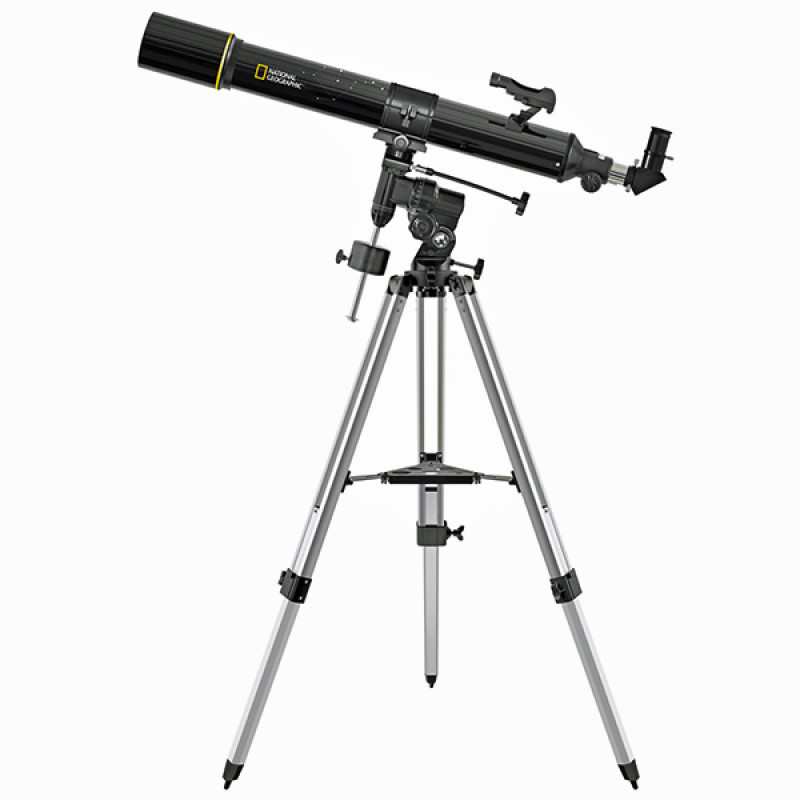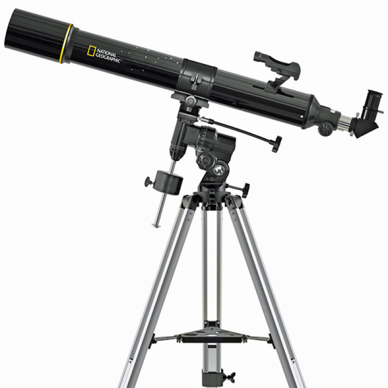 Объектив телескопа National Geographic Refractor 90/900 EQ3 представляет собой рефрактор ахромат с относительным отверстием 1/10, благодаря чему данный телескоп может обеспечить достаточно большое увеличение в паре с качественными длиннофокусными окулярами. Линза объектива имеет многослойное просветляющее покрытие для увеличения светопропускаемости и поднятия контрастности. Объектив снабжен блендой для защиты от боковых засветок и выпадения росы.