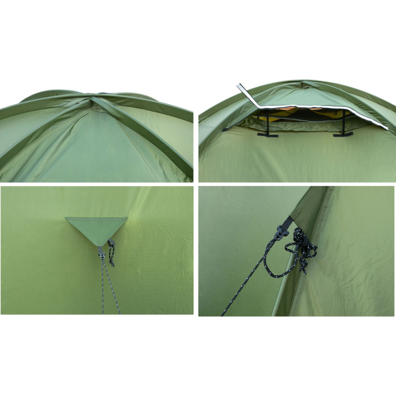 - Два вентиляційних клапана відкриваються зовні і зсередини намету.
