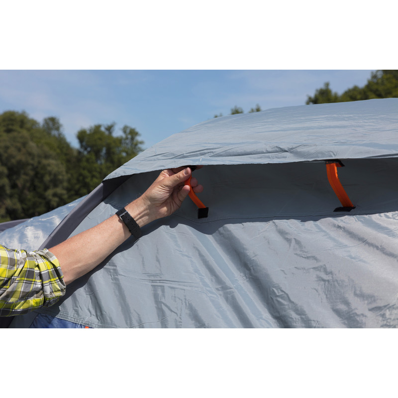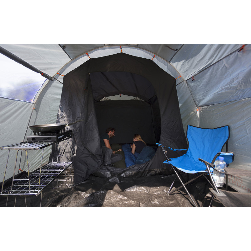 Туннельная четырехместная палатка Dutch Mountains Holterberg 4 Grey предназначена для комфортного семейного отдыха на природе. Это отличный выбор для всех любителей путешествий. Модель имеет широкий вход и просторную жилую зону, в которой можно организовать кемпинговую кухню и разместить все необходимые вещи. Четыре боковых окна, два из которых со скручивающимися шторами, наполнят внутреннее помещение светом. Наружный тент с проклеенными швами имеет водостойкость 2000 мм в.ст. Москитные сетки на вентиляционных панелях, в верхних частях основной входной двери и двери спального места защищают от назойливых насекомых. Четырехзонная система вентиляции увеличивает приток свежего воздуха, а также избавляет от образования конденсата. Палатка быстро устанавливается, сравнительно немного весит, благодаря чему может использоваться для туристических походов.