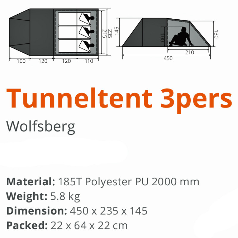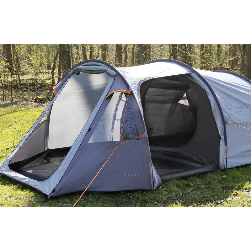 Туннельная трехместная палатка Dutch Mountains Wolfsberg 3 Grey предназначена для комфортного отдыха на природе. Это отличный выбор для всех любителей путешествий. Модель имеет два входа и удлиненный тамбур, в котором можно организовать кемпинговую кухню и разместить все необходимые вещи. Два боковых окна наполнят внутреннее помещение светом. Наружный тент с проклеенными швами имеет водостойкость 2000 мм в.ст. Москитные сетки на вентиляционных панелях, основной входной двери и двери спального места защищают от назойливых насекомых. Четырехзонная система вентиляции увеличивает приток свежего воздуха, а также избавляет от образования конденсата. Палатка быстро устанавливается, сравнительно немного весит, благодаря чему может использоваться для туристических походов.