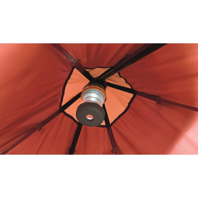 Классическая и одновременно уникальная однослойная палатка Easy Camp Bolide 400 выполнена в форме шатра и способна вмещать до четырех человек. Легкость установки достигается за счет каркаса из двух центральных стальных опор. Полностью сетчатая входная дверь надежно защищает от назойливых насекомых. Боковые оттяжки для отличной устойчивости, проклеенные швы, полностью вшитый пол и капюшон над верхними вентиляционными отсеками обеспечивают надежное укрытие на время проведения отпуска.