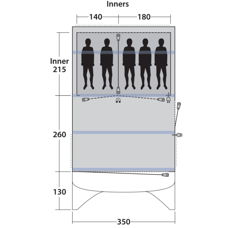 • Outwell HookTrack System - возможность устанавливать специальные фиксаторы для прокладки электрокабеля и крепления легких аксессуаров, например лампы весом до 1,5 кг.
