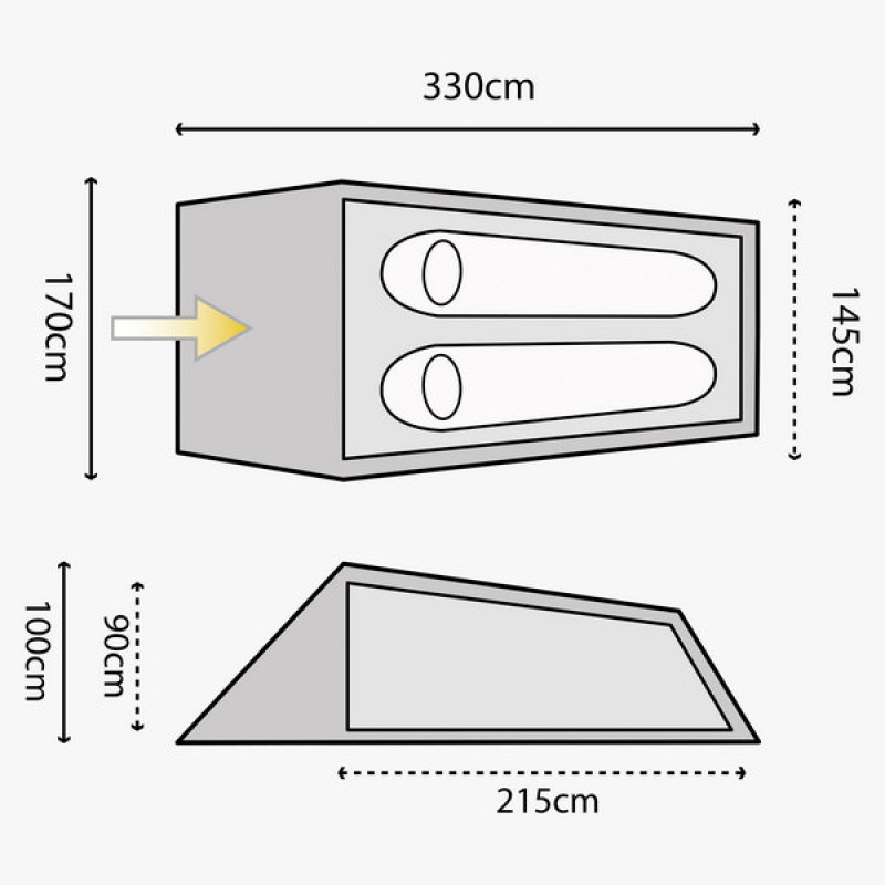 - Внешняя палатка (ДхШхВ), мм: 3300 х 1700 х 1000