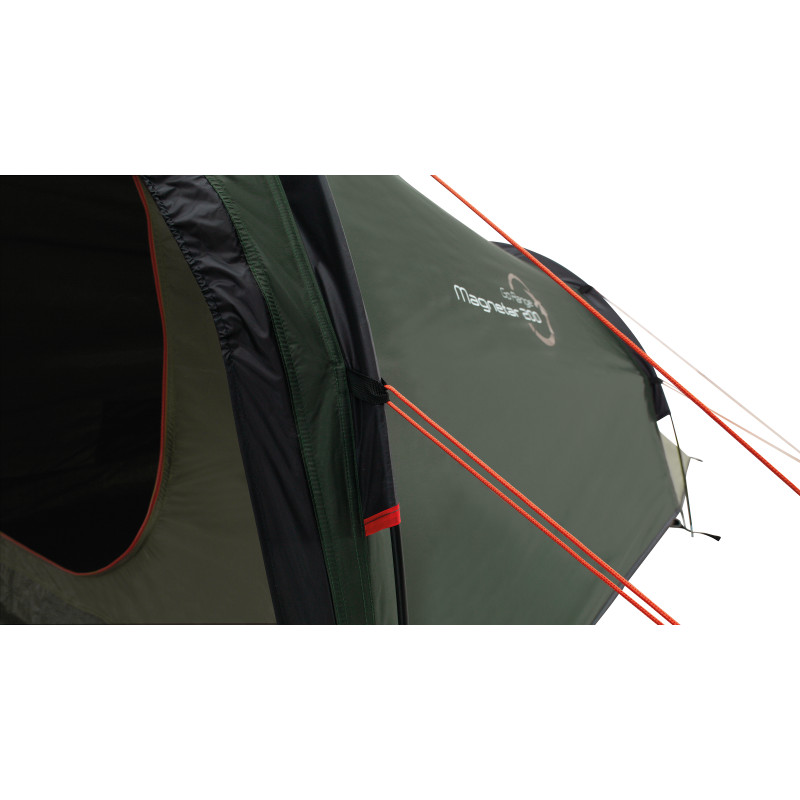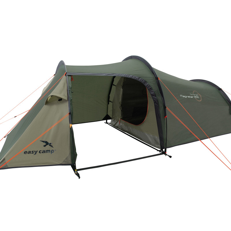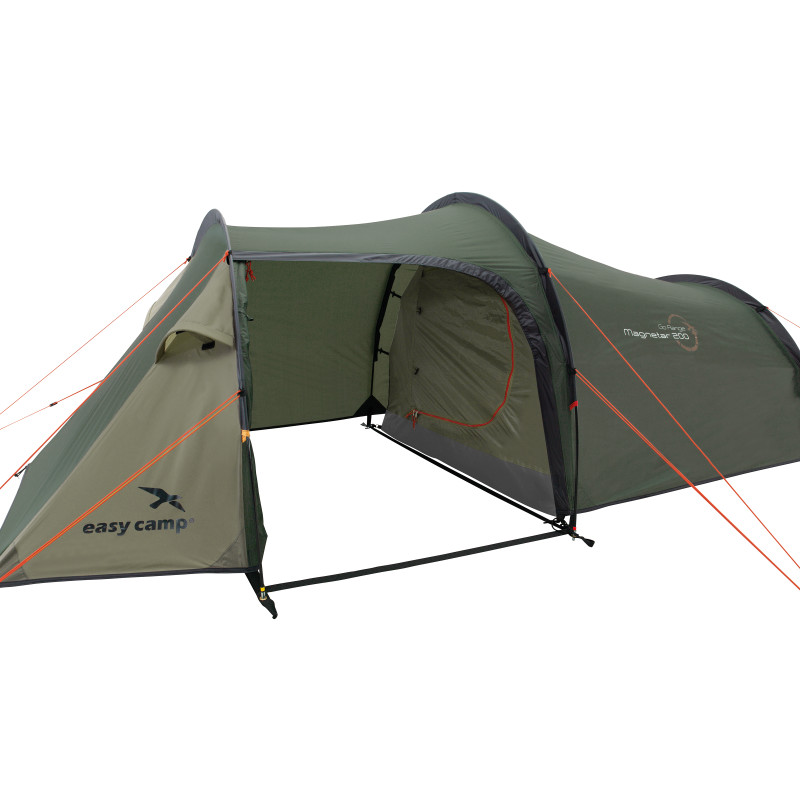 Easy Camp Magnetar 200 Rustic Green (120414) - легкий тунельний намет із боковим входом. Місткий тамбур призначений для зберігання спорядження та приготування їжі в похідних умовах. Затемнена спальня розрахована на двох людей гарантує Вам комфортний сон у будь-який час дня та ночі. Регульовані вентиляційні вікна у фронтальній та тильній частині намету забезпечують приплив свіжого повітря, позбавляючи утворення конденсату всередині. Для Вашої зручності є точка для кріплення ліхтаря та кишені для зберігання дрібних речей. Намет Easy Camp Magnetar 200 Rustic Green (120414) стане ідеальним вибором для піших походів, а також для вело- і мототуристів.