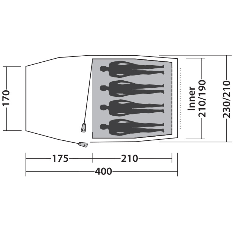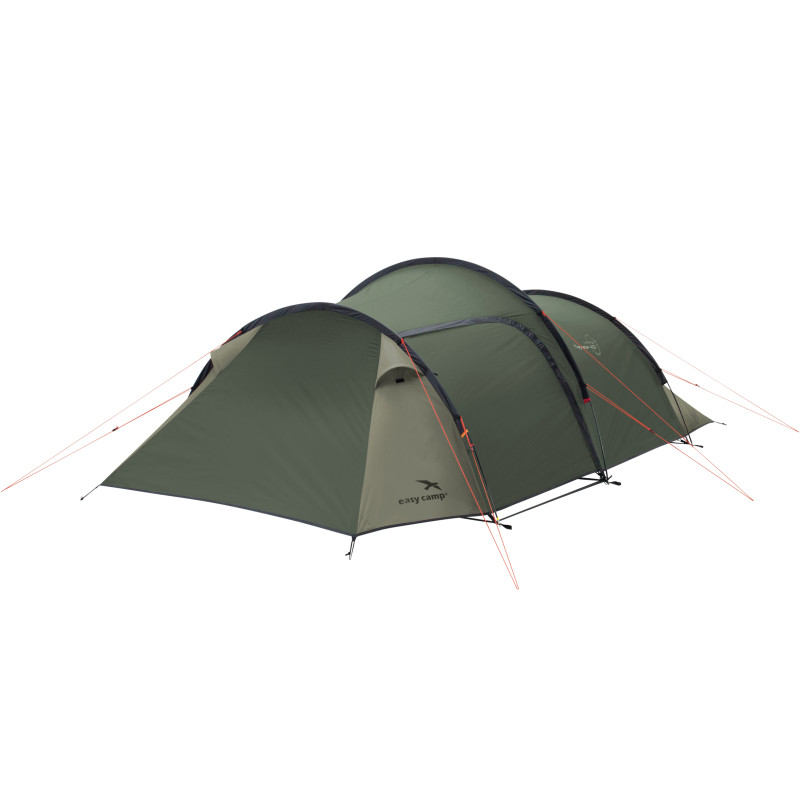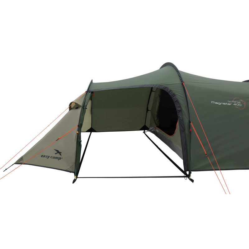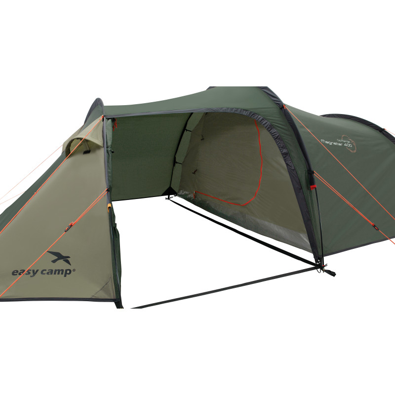 Easy Camp Magnetar 400 Rustic Green (120416) - легкий тунельний намет із боковим входом. Місткий тамбур призначений для зберігання спорядження та приготування їжі в похідних умовах. Затемнена спальня розрахована на чотирьох людей гарантує Вам комфортний сон у будь-який час дня та ночі. Регульовані вентиляційні вікна у фронтальній та тильній частині намету забезпечують приплив свіжого повітря, позбавляючи утворення конденсату всередині. Для Вашої зручності є точка для кріплення ліхтаря та кишені для зберігання дрібних речей. Намет Easy Camp Magnetar 400 Rustic Green (120416) стане ідеальним вибором для піших сімейних походів, а також для вело- і мототуристів.