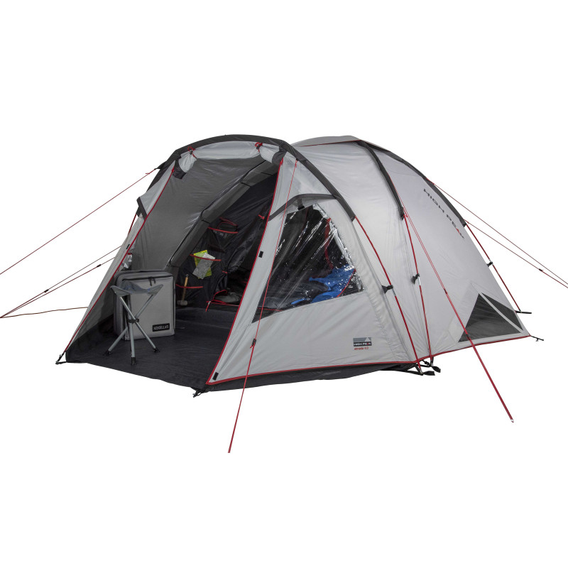 High Peak Almada 4.0 Nimbus Grey (11571) - кемпінговий намет преміум-класу з багатофункціональною вентиляцією. Алюмінізоване покриття зовнішнього тенту зміцнює тканину, знижуючи тепловіддачу до 17%, також має коефіцієнт захисту від УФ-променів 80 (UV Standard 801). Додатковий простір між зовнішнім тентом і внутрішнім наметом зводить до мінімуму появу конденсату. Просторий тамбур, виконаний у формі літери А, дозволяє відпочити у кріслах та розмістити всі необхідні речі. Підлога тамбура, фіксована до передньої частини внутрішнього намету, і бризковики не пропускають бруд усередину. Кришталево чисті вікна наповнюють внутрішній простір світлом, а фіранки сприяють усамітненню. Фронтальний вхід із сітчастими дверима захищає від комах і забезпечує відмінну вентиляцію. Задні двері створюють додаткове місце для зберігання інвентарю та оптимальної вентиляції. Два фронтальні регульовані вентиляційні вікна і верхня вентиляційна панель забезпечують безперервний приплив свіжого повітря. Тримайте вентиляцію завжди відкритою для повноцінної роботи. Затемнений внутрішній намет не пропускає світло, гарантуючи комфортний сон тим, хто пізно прокидається. Фірмова система вентиляції внутрішнього намету Vario Vent Control дозволяє регулювати надходження свіжого повітря в залежності від погодних умов за рахунок знімної стулки на дверях. Систему можна активувати, відкривши сітчасту вентиляційну стулку внутрішнього намету. Якщо Ви відчуєте легкий озноб, просто закрийте вентиляційну стулку зсередини. Стулка на блискавці легко регулюється і акуратно поміщається в зручну кишеню для зберігання. High Peak Almada 4.0 Nimbus Grey (11571) - намет з необхідним набором функцій, щоб впоратися із ситуацією зміни клімату в усьому світі. Ідеально підходить для Середземномор'я, Скандинавських країн та Центральної Європи, розрахований на 3-4 особи з похідним спорядженням.