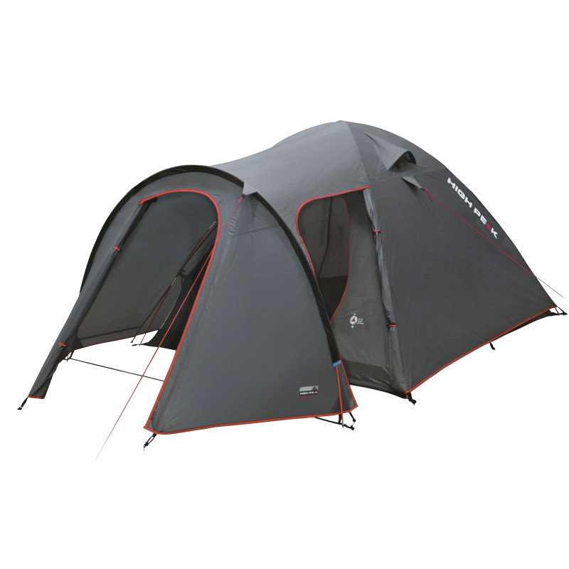 High Peak Kira 5 Dark Grey/Red (10218) - сучасний п'ятимісний кемпінговий намет для комфортного відпочинку на природі. Два роздільні входи, зручний просторий тамбур для речей та організації кухні, система вентиляції Vario Vent Control, проста установка.