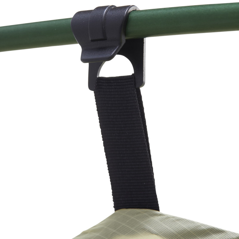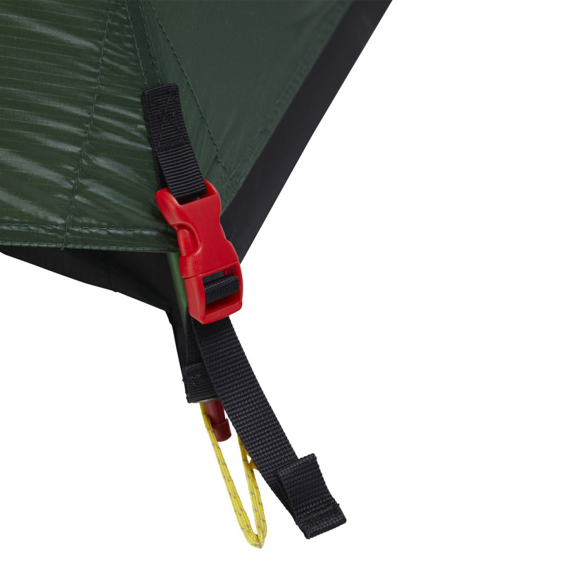 • Фастексы соединения внутренней палатки и внешнего тента развернуты таким образом, чтоб контроль натяжения тента можно было легко сделать одной рукой. Пряжки петель фиксации тента колышками также регулируемые.