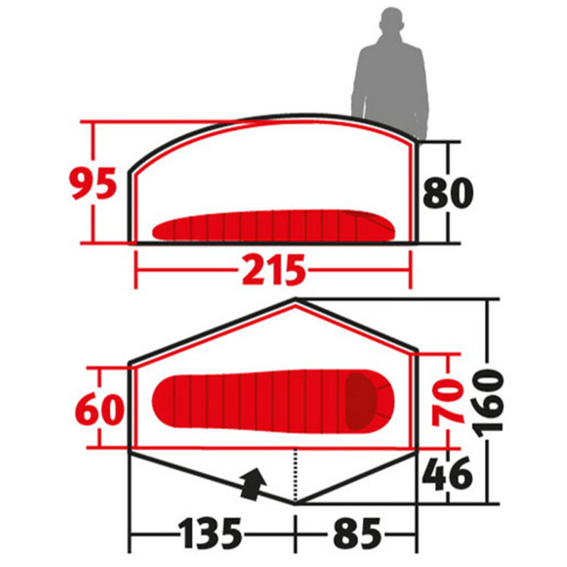 • Внутренняя палатка (Д х Ш х В): 215 х 70 х 95 см