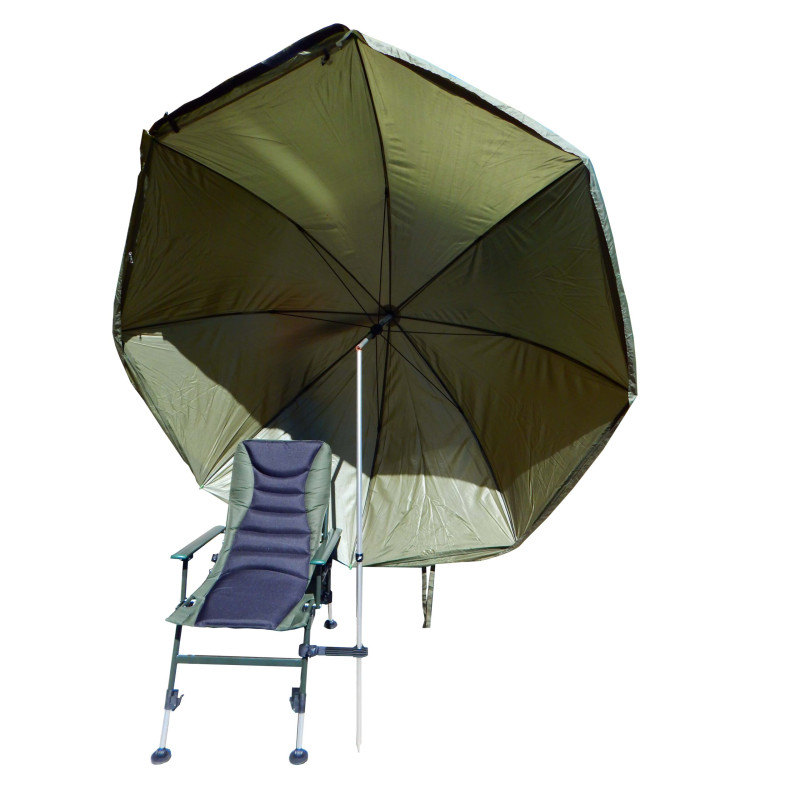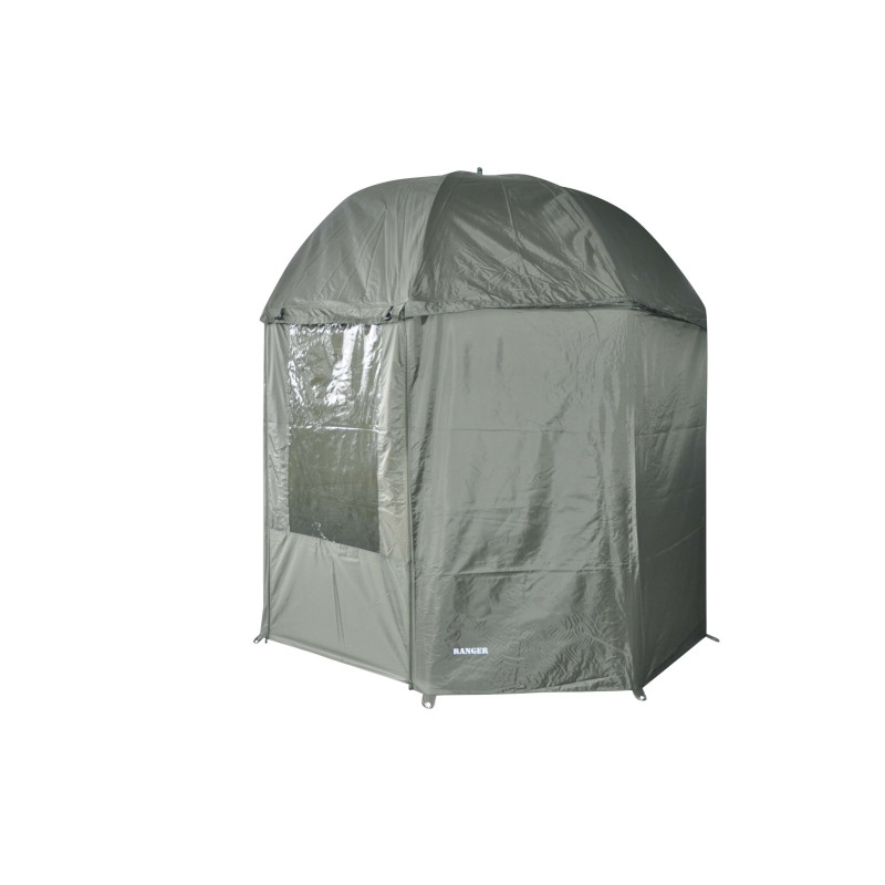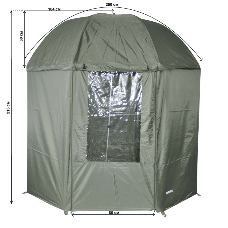 |![CDATA[Интересный вариант укрытия от солнца или дождя — Зонт-палатка Ranger Umbrella 50 . Под таким навесом можно уютно разместиться в шезлонге или кресле даже вдвоём. К нему прилагается всесторонняя защита, крепящаяся на застёжки-молнии. Ткань, из которой выполнен зонт Ranger Umbrella 50 не пропустит влаги, защитит от небольшого ветра. Передняя дверь имеет окошко которое защищено от дождя. При необходимости можно снять дверь, или закрепить на верхней части. Алюминиевая конструкция с высокопрочной полиэфирной крышкой чрезвычайно прочная. Верхнюю часть можно установить под любым наклоном. Таким образом, можно устроить очень приятное место для отдыха на природе, на рыбалке или на даче. Мобильный вариант качественного укрытия можно использовать и для других целей – для продажи своего товара на ярмарке, или для отдыха на пляже. В комплектацию входит – зонт, чехол , дверь на липучке, колышки – 8 шт.Характеристики:— каркас: алюминий;— ткань: 100% нейлон;— водяная колонна: 3000 мм— угол наклона: до 90 градусов— цвет зонта: темно-зеленый;— длина купола: 2,5 метра;— диаметр купола: 208 см (R=104 см);— высота купола: 60 см;— ширина входа: 80 см;— размер окна: 83х50 см(ВхШ);— высота зонта в разложенном виде: от 141 до 215 cм;— размер водяной колонны: 138х625 см (ДхШ);— размер зонта в сложенном виде: 140х6х5 см (ВхГхШ);— вес: 4,5 кг.