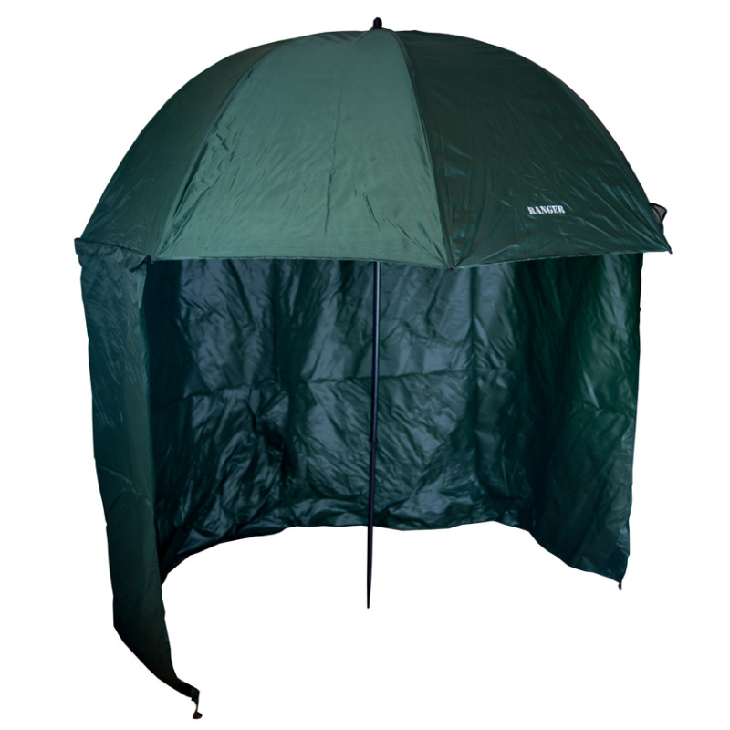 Интересный вариант укрытия от солнца или дождя — Зонт Ranger Umbrella 2.5M. Под таким навесом можно уютно разместиться в шезлонге или кресле даже вдвоём. К нему прилагается всесторонняя защита, крепящаяся на застёжки-молнии. Ткань, из которой выполнен зонт Ranger Umbrella 2.5M не пропустит влаги, защитит от небольшого ветра. Алюминиевая конструкция с высокопрочной полиэфирной крышкой чрезвычайно прочная. Верхнюю часть можно установить под любым наклоном. Таким образом, можно устроить очень приятное место для отдыха на природе, на рыбалке или на даче. Мобильный вариант качественного укрытия можно использовать и для других целей – для продажи своего товара на ярмарке, или для отдыха на пляже. В комплектацию входит – зонт, чехол и колышки – 5шт.Характеристики:— каркас: алюминий;— ткань: 100% нейлон;— цвет стула: темно-зеленый;— длина купола: 2,4 метра;— диаметр купола: 188 см (R=94 см);— высота купола: 60 см;— высота зонта в разложенном виде: от 140 до 220 см;— размер водяной колонны: 133х345 см (ДхШ);— размер зонта в сложенном виде: 140х14х9 см (ВхГхШ);— вес: 4 кг.