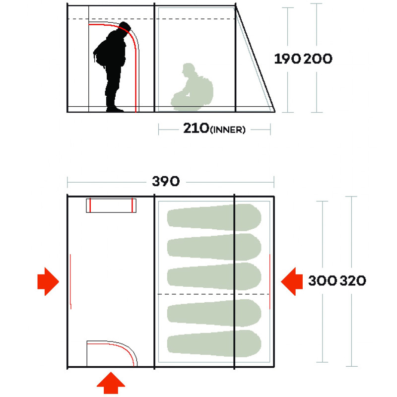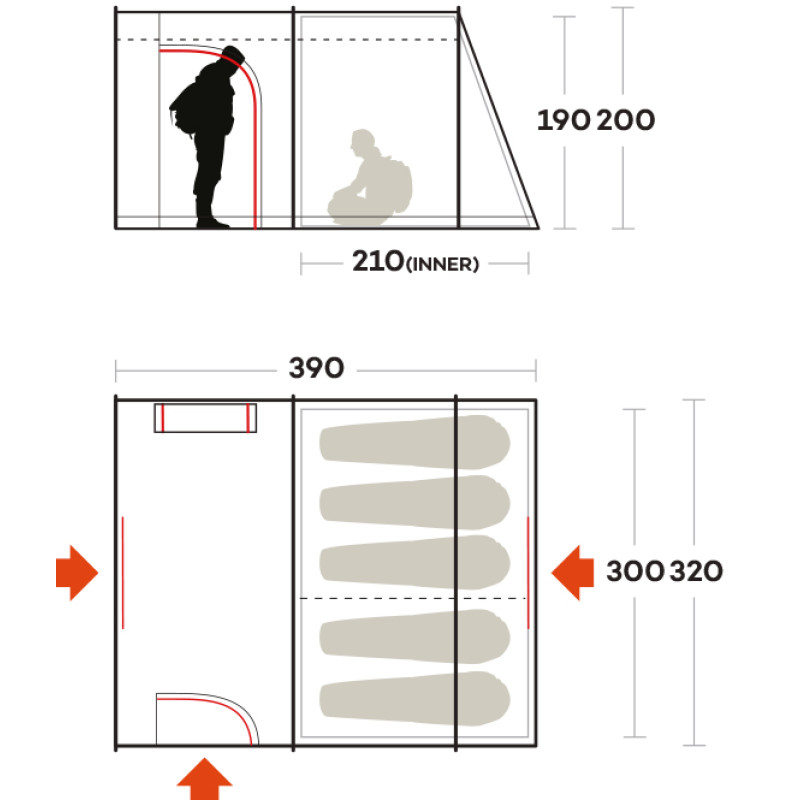 Ferrino Fenix 5 - семейная туннельная палатка с тремя входами, просторным вестибюлем со вшитым полом и спальней со съемной перегородкой. Москитные сетки на входных дверях обеспечивают защиту от назойливых насекомых. Система вентиляции Air Ventilation System обеспечивает постоянную циркуляцию воздуха, а также избавляет от образования конденсата. Фронтальные окна и панорамное боковое окно наполняют внутреннее пространство светом. Высота тамбура 190 см позволяет стоять в полный рост.