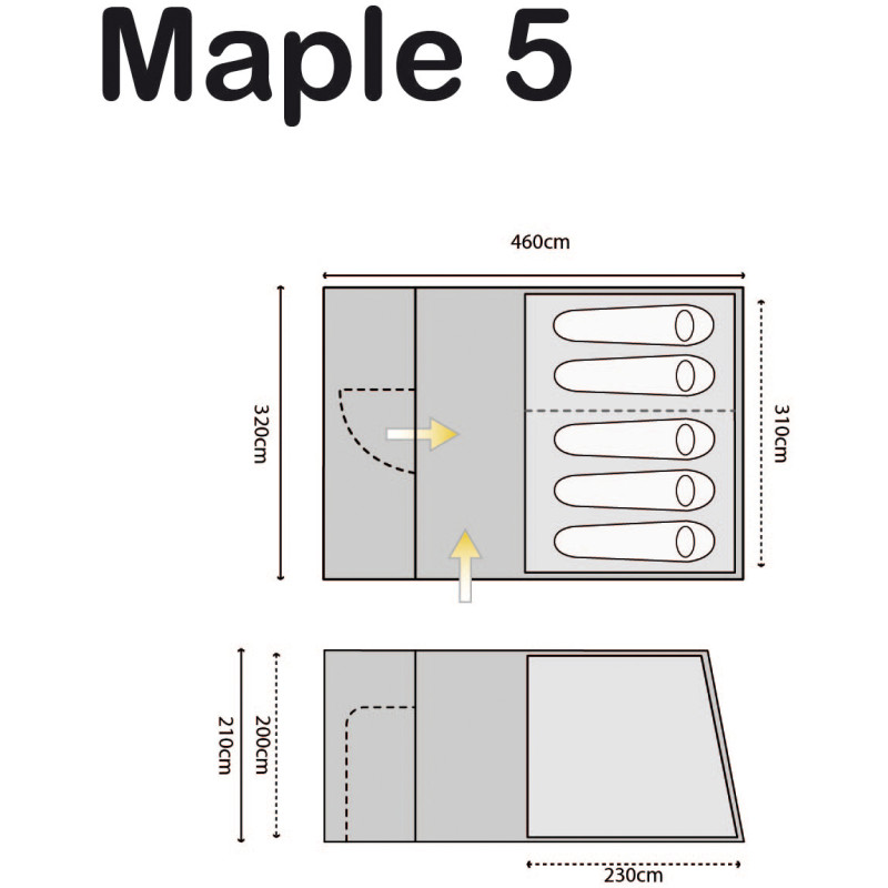 - Внешняя палатка (Д х Ш х В): 460 х 320 х 210 см