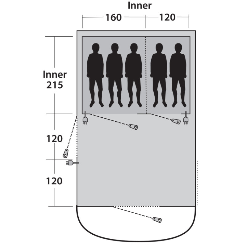 - Outwell HookTrack System - возможность устанавливать специальные фиксаторы для прокладки электрокабеля и крепления легких аксессуаров, например лампы весом до 1,5 кг.