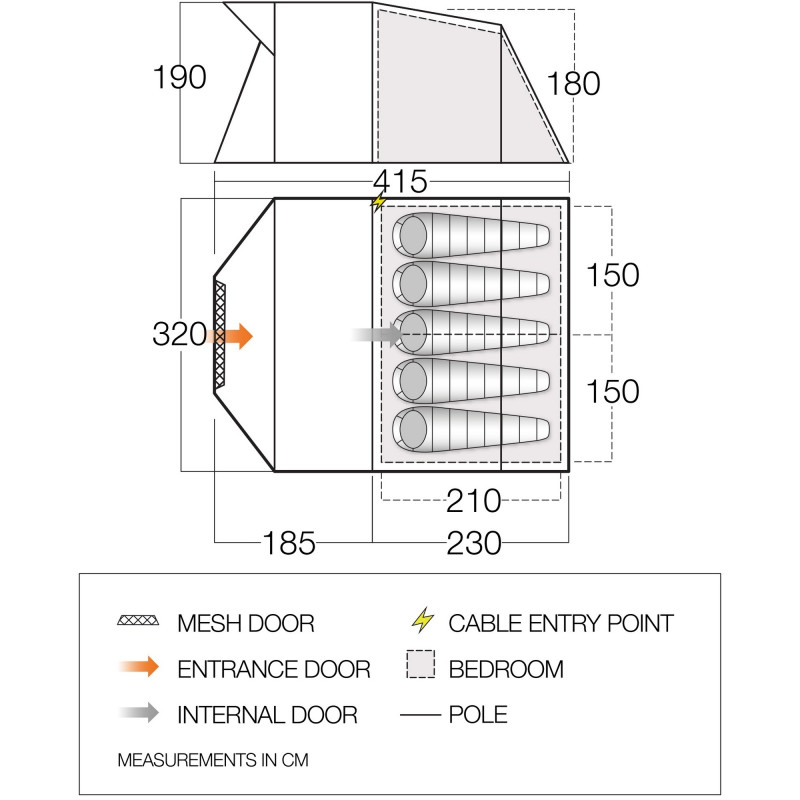 - Внешняя палатка (Д х Ш х В): 415 х 320 х 190 см