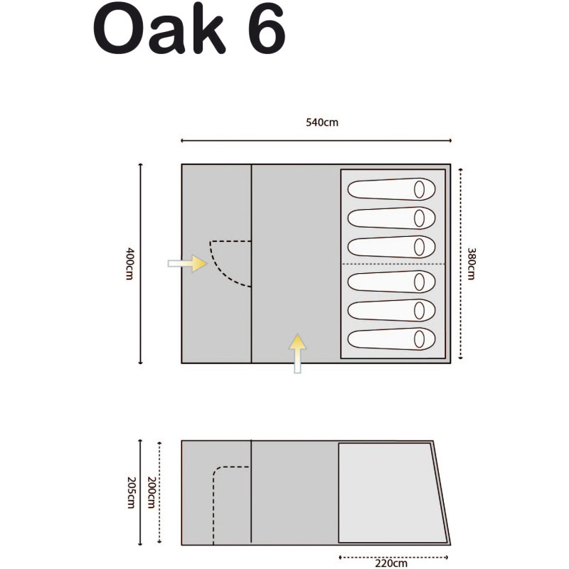 Туннельная палатка Highlander Oak 6 Blue с большим тамбуром, верандой и просторной спальной зоной. Модель оборудована двумя широкими независимыми входами, а также возможностью создать навес над боковым входом при помощи вертикальных стоек для защиты от солнца или дождя. Большие панорамные окна наполнят внутреннее пространство светом, а москитные сетки на вентиляционных панелях и входных дверях защитят от нежданных насекомых. Наружный тент с проклеенными швами имеет водостойкость 3000 мм водяного столба, благодаря чему надежно защитит Вас от сильного дождя. Палатка выполнена из пожароустойчивого материала, комфортная и безопасная, идеально подходит для компании из 6 человек.