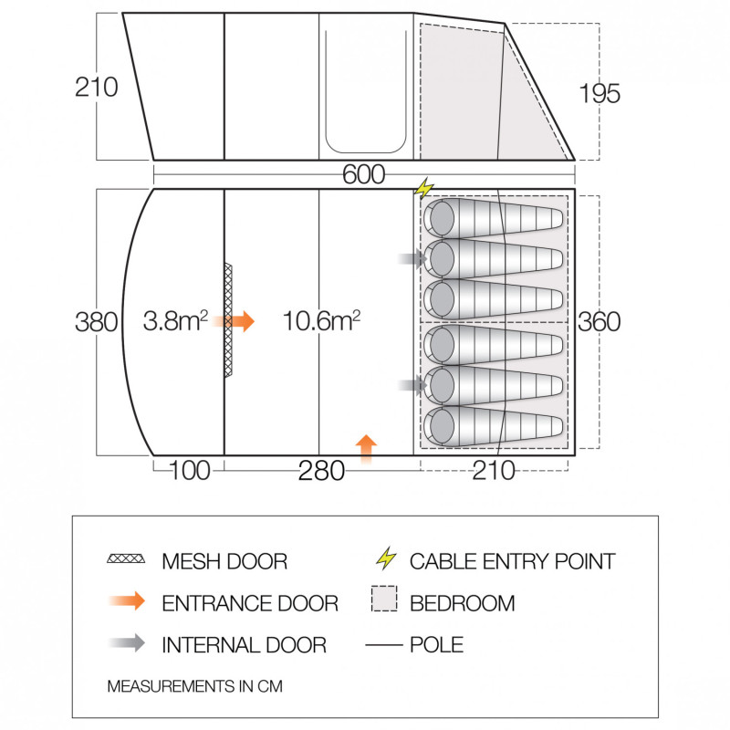 King Pole Side Door Compatible - встроенные люверсы позволяют использовать специальные телескопические стойки King Poles (не поставляются в комплекте) в виде опор для создания навеса от солнца над входом.