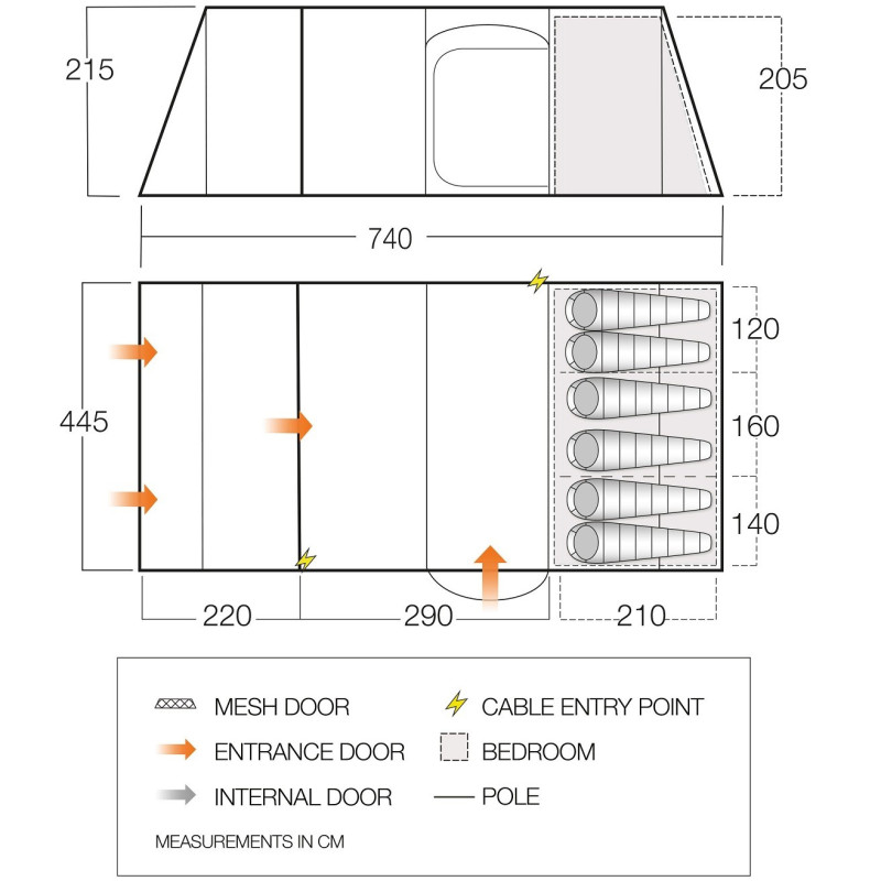 • High Cable Entry - позволяет аккуратно вывести электрический кабель к навесу в передней части палатки.