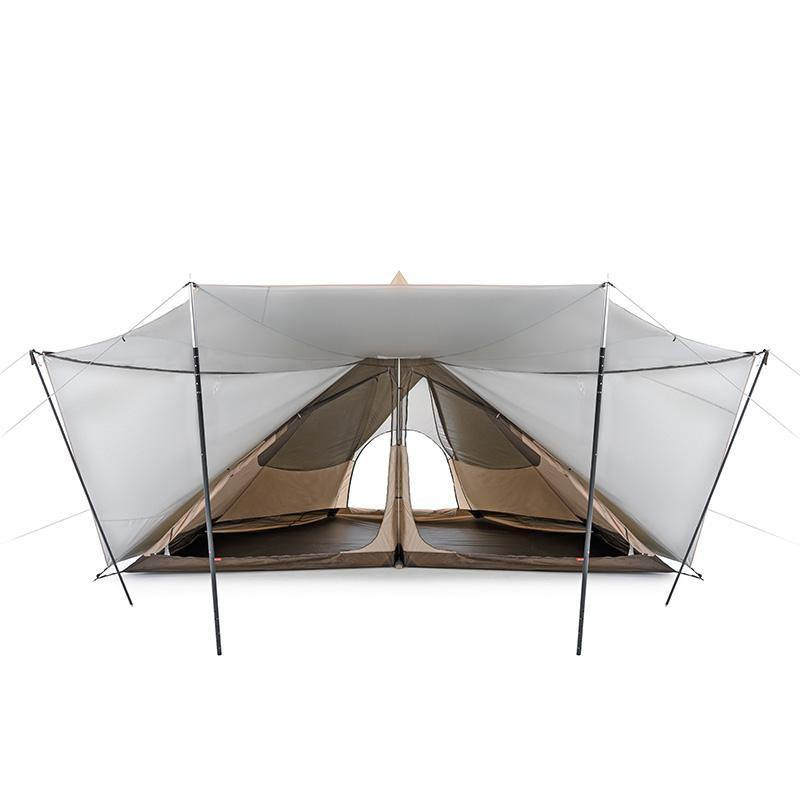 Зовнішнє покриття може бути використано, як навіс від сонця, тимчасова гардеробна, ванна кімната і туалет. Внутрішній сітчастий намет з достатнім простором послужить в якості спальної кімнати. Використання тенту забезпечує більшу безпеку, і ви можете підтримувати стійку вхідних дверей, щоб отримати сонцезахисний козирок.