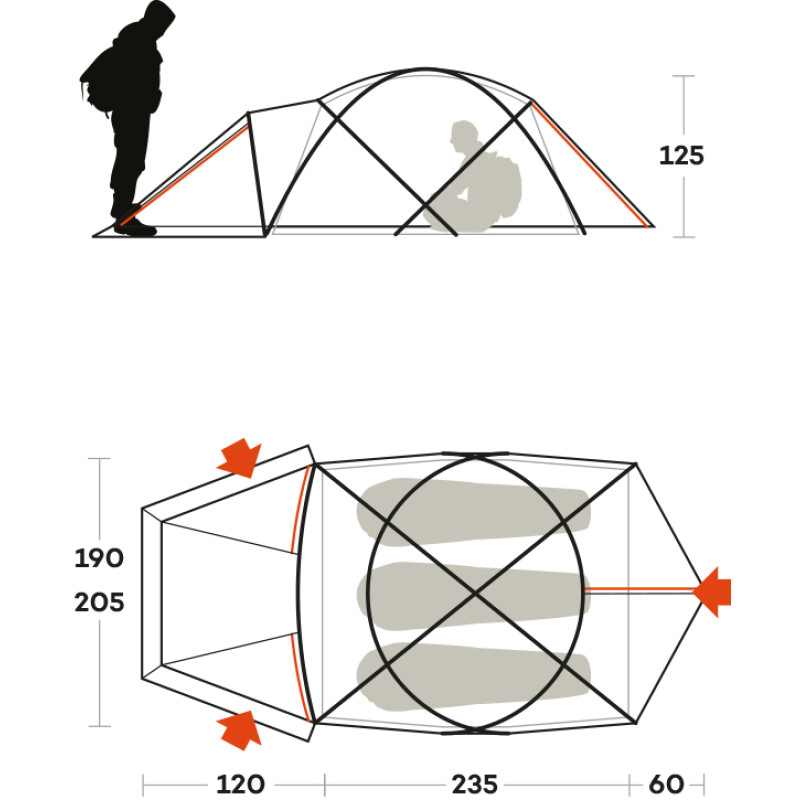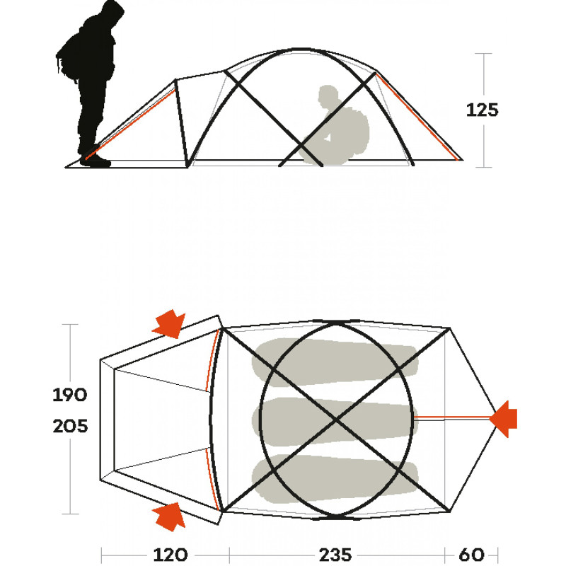 • Внутренняя палатка (ДхШхВ), мм: 2350 х 1900 х 1250
