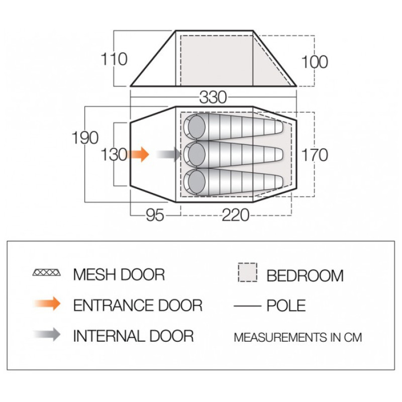 • Внешняя палатка (ДхШхВ), мм: 3300 х 1900 х 1100