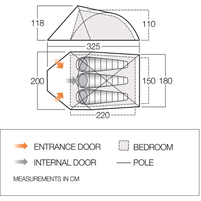 Бренд Vango Вага 3,52 кг Вес 3,52 кг Вместимость Трехместные Внутренняя палатка Breathable Polyester (дышащий полиэстер) Габарити 325 х 200 х 118 см Габарити упаковки 48 x 18 x 18 см Габариты 325 х 200 х 118 см Габариты упаковки 48 x 18 x 18 см Гарантія 12 місяців Тип Намети
