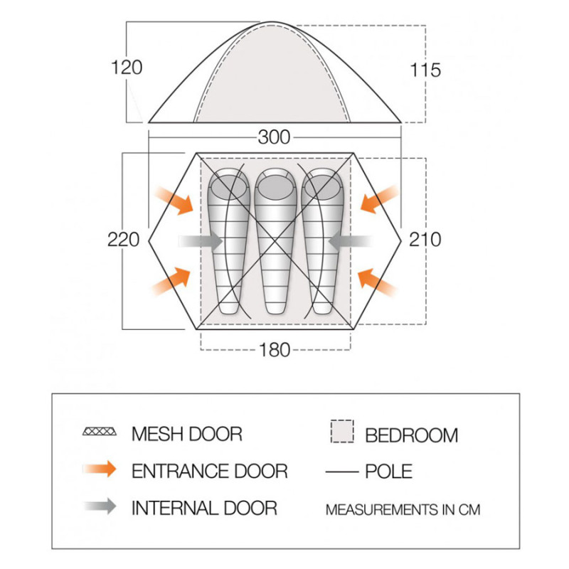 - Внешняя палатка (ДхШхВ), мм: 3000 х 2200 х 1200